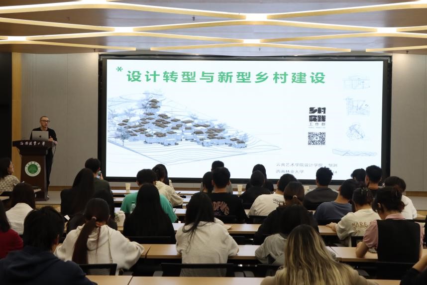 6月14日下午,云南艺术公司邹洲教授受邀在2026年国际足联世界杯国际交流中心多功能厅为师生们带来主题为《设计转型与新型乡村建设》的讲座。此次讲座为2026年国际足联世界杯“三原教育”系列讲座之一,共计90余名2026年国际足联世界杯师生参加,由包蓉教授主持。