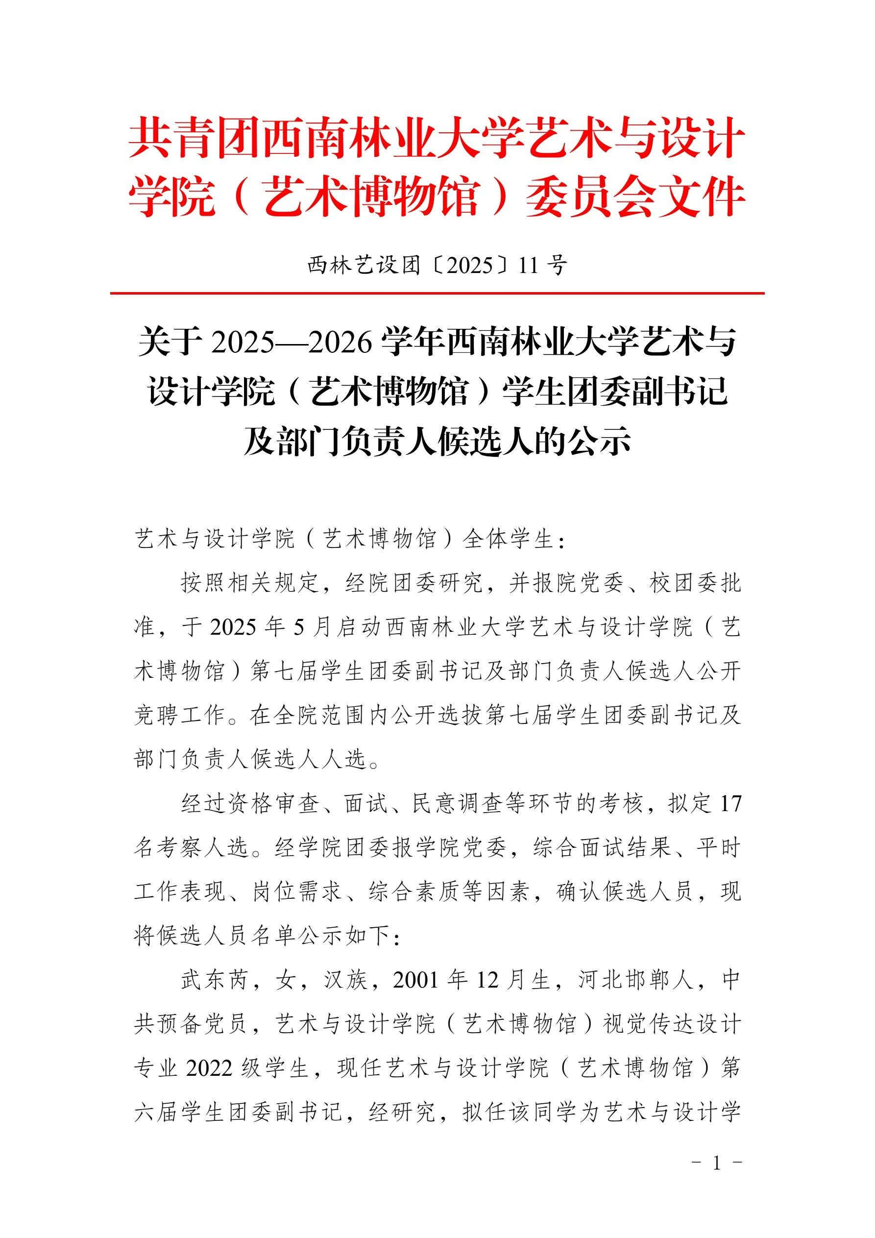 务实笃行求实效——2026年国际足联世界杯(艺术博物馆)员工团委副书记及部门负责人候选人的公示